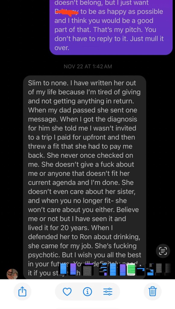 When I was with REDACTED and she was at her worst I reached out to one of her lifelong friends and this happened: